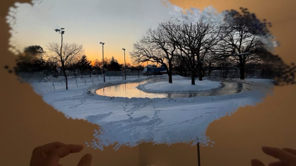 After playing around with a photo from my local park Augsburg (original photo above, splat shown below). I moved into museum quality content. Found a couple of images from the National Gallery of Art. Taking a couple of images from there and processing them through ML-Sharp created some visually pleasing images. Once they are aligned properly you can move around the once 2D like it is a piece in a museum.